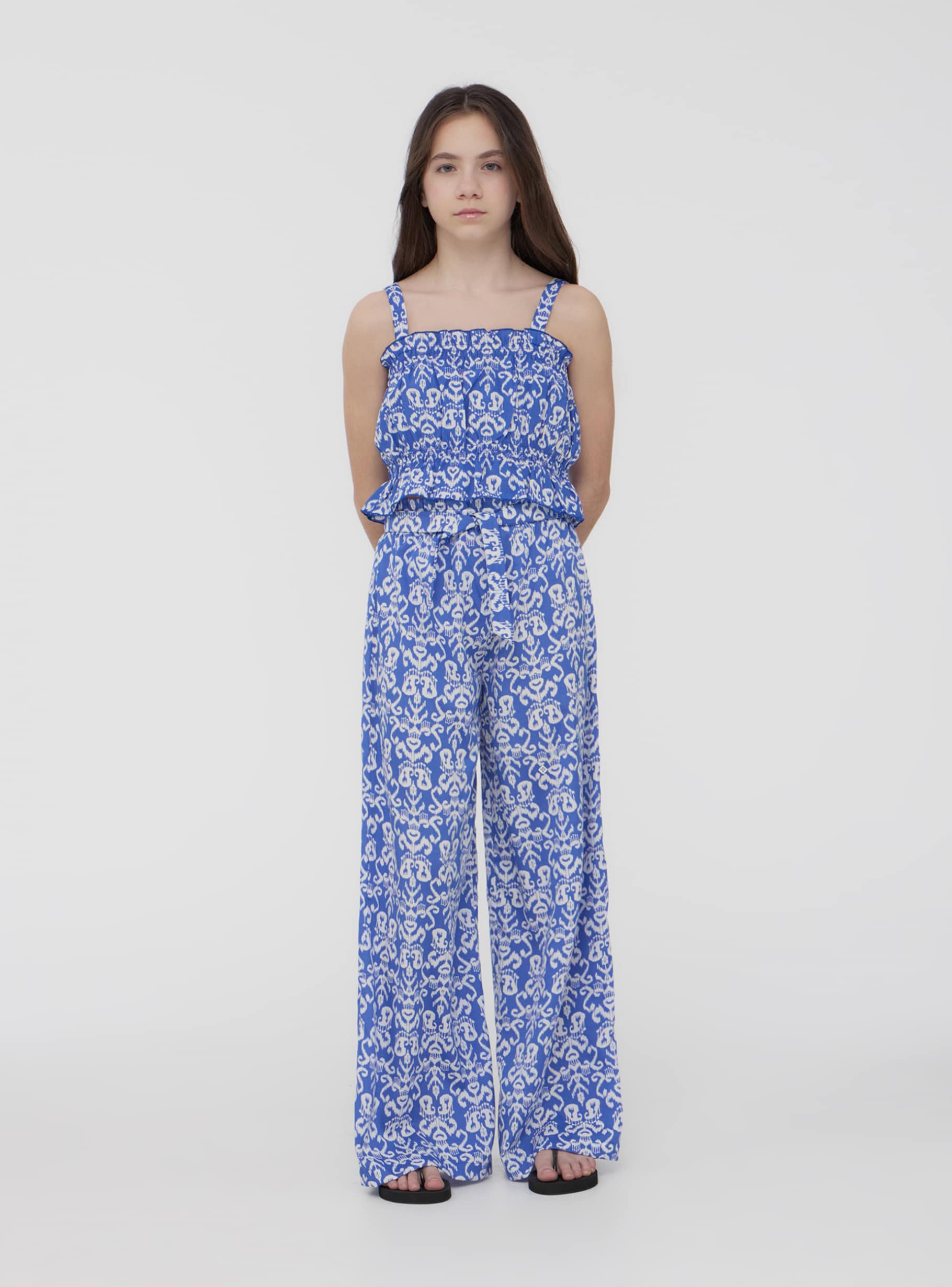 - A crop top for girls, enhanced by a vibrant ethnic print that adds an original and modern touch.