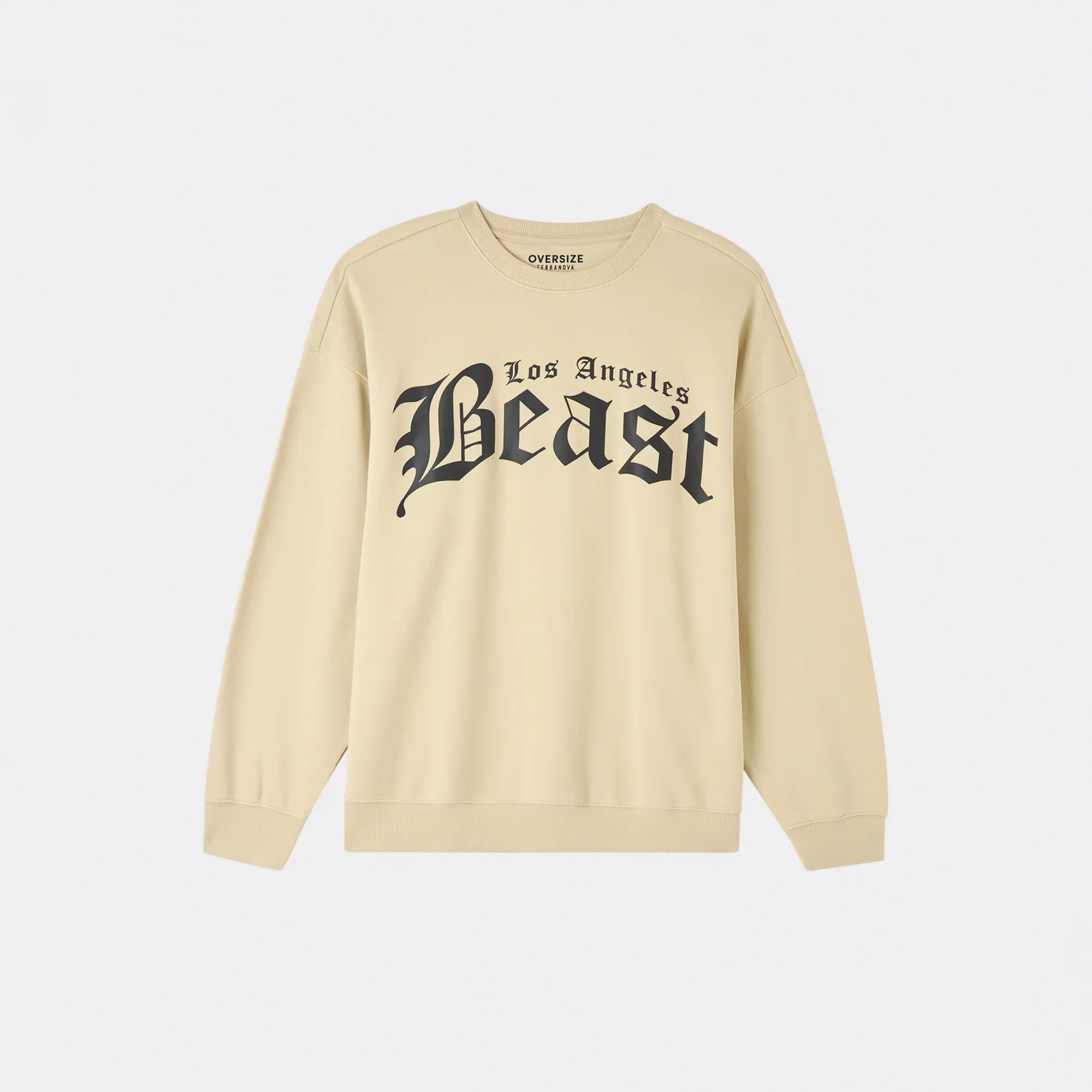- Men's crew-neck sweatshirt with gothic writing on the front.