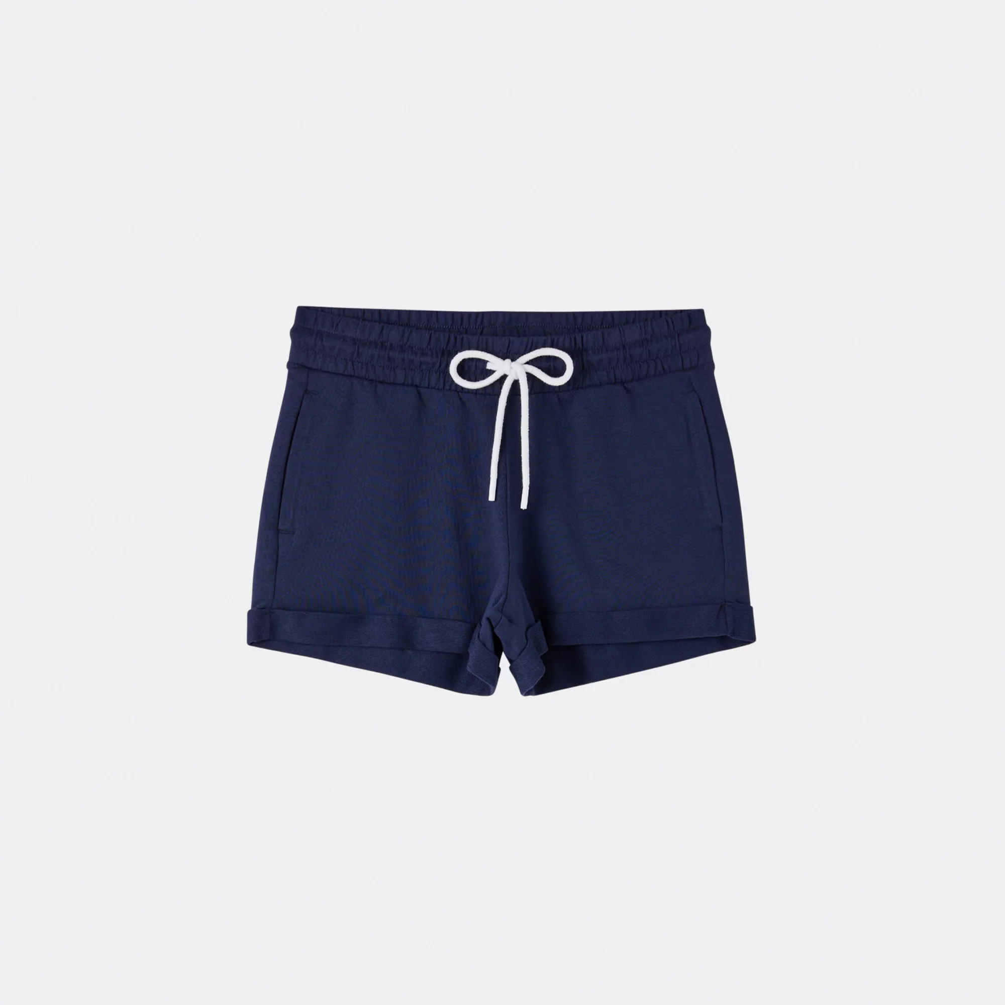 - Model with turn-up hem, drawstring and elastic waist.