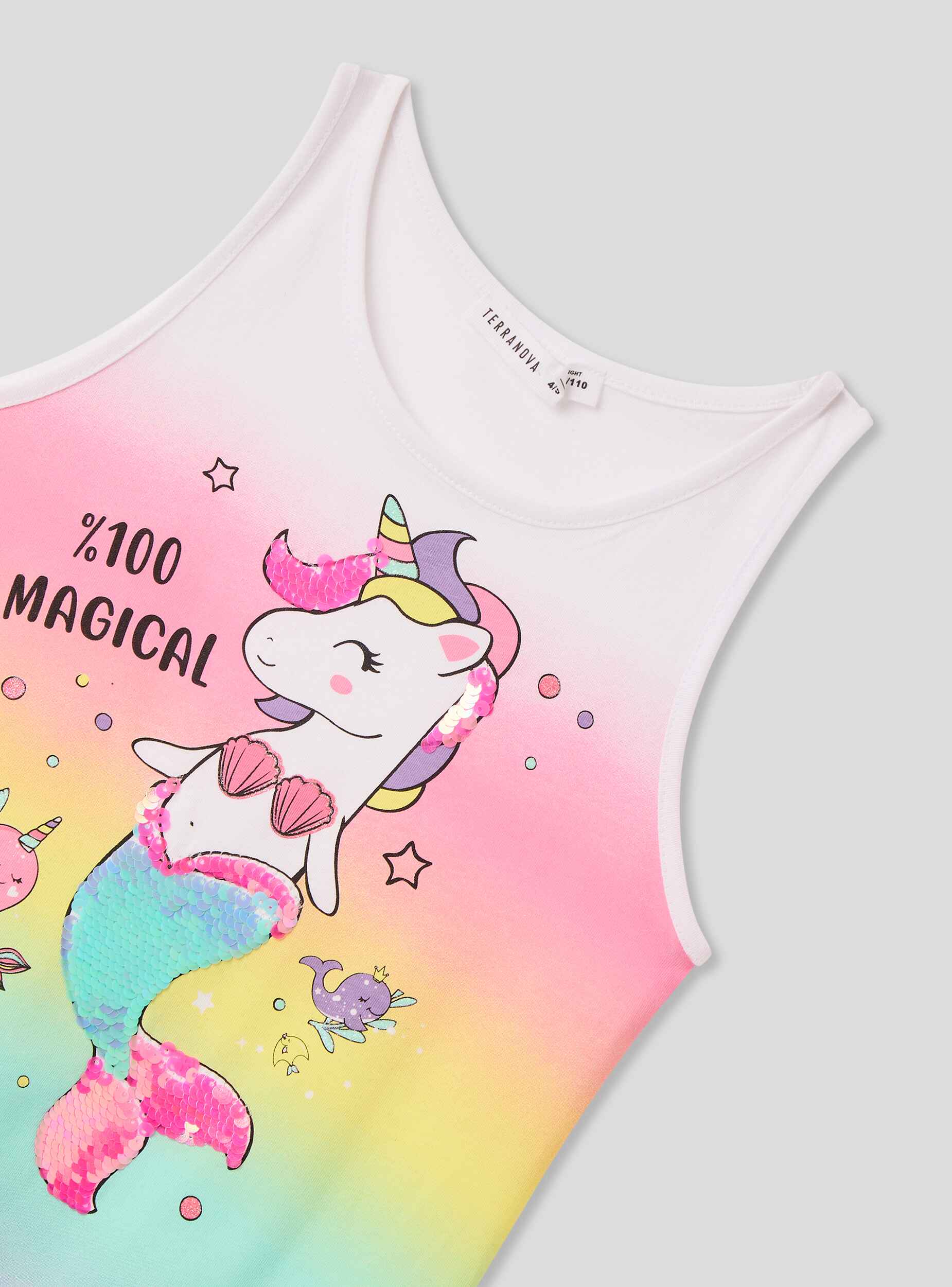 - The print of a sweet unicorn with a mermaid tail adds a fairy-tale touch, while the glittery details and sequins provide brightness and magic, perfect for those who love to daydream.