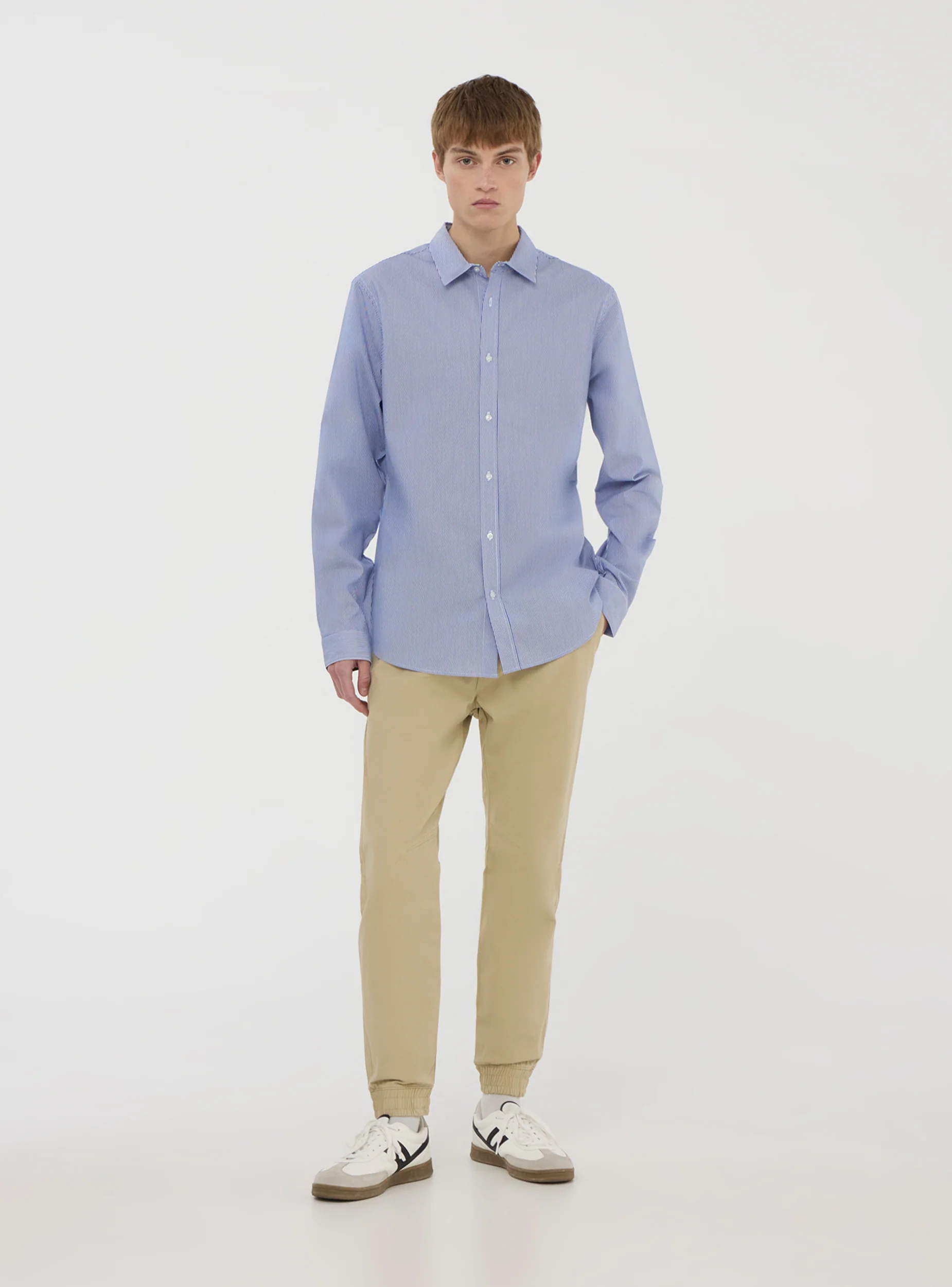 - The stretch poplin fabric offers a comfortable fit, ideal for those looking for a versatile and easy-to-iron garment.