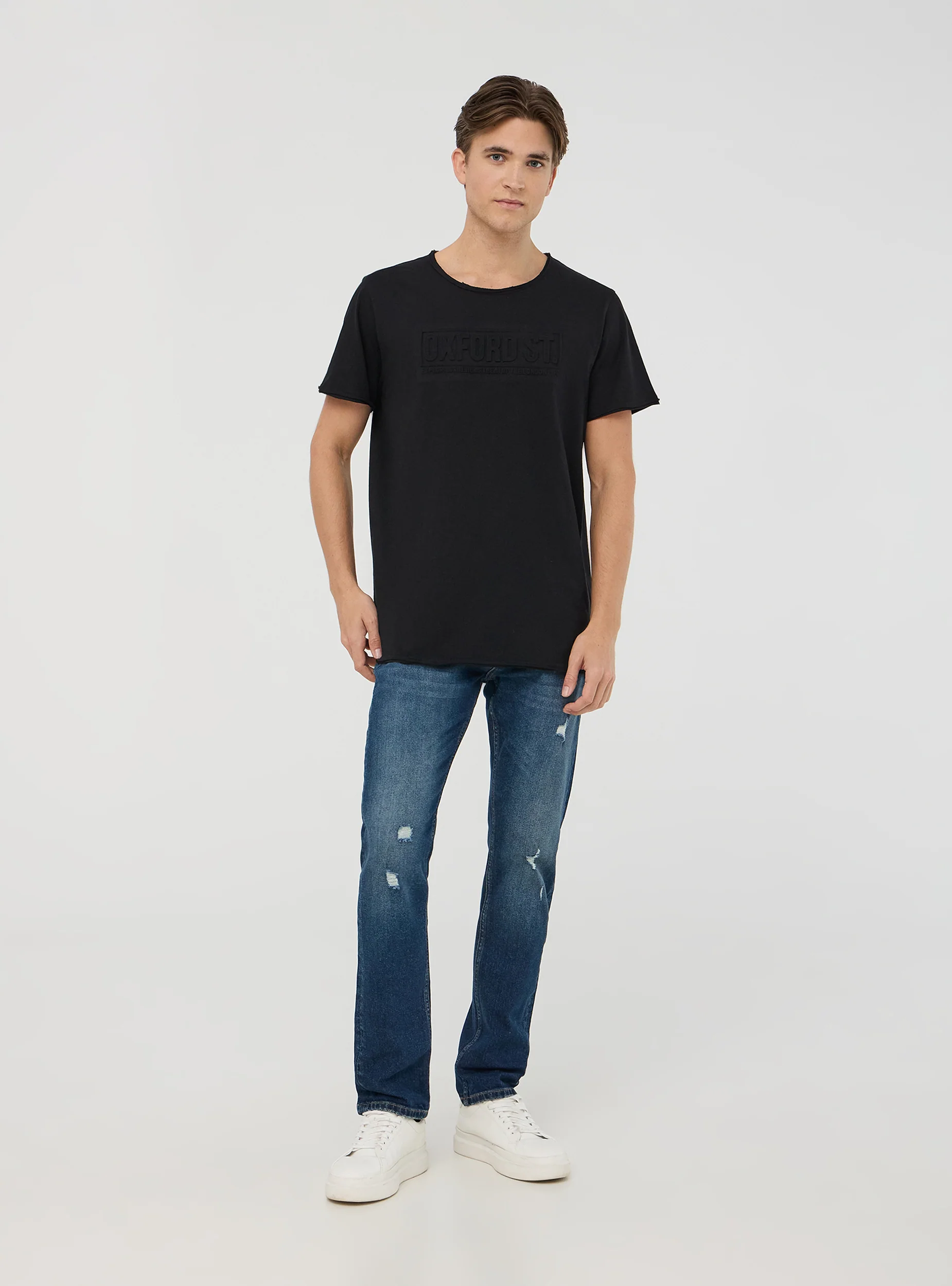 - Men's short-sleeved t-shirt with a crew neck, enhanced by a 3D embossed print for a modern and distinctive effect.
