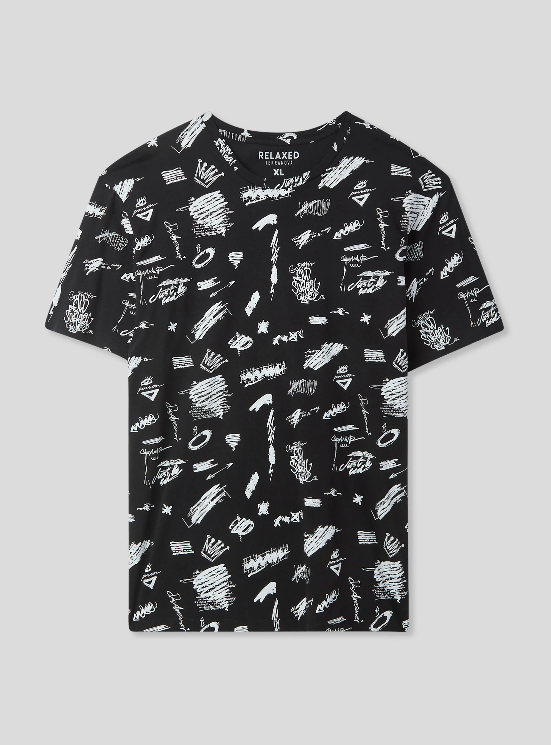 - Men's t-shirt with an urban and modern style, featuring an all-over graffiti print that gives it an original and creative look.