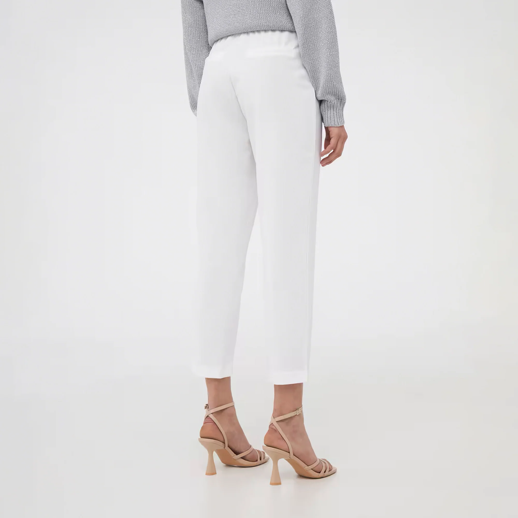 - Women's chino trousers in soft, solid color fabric.