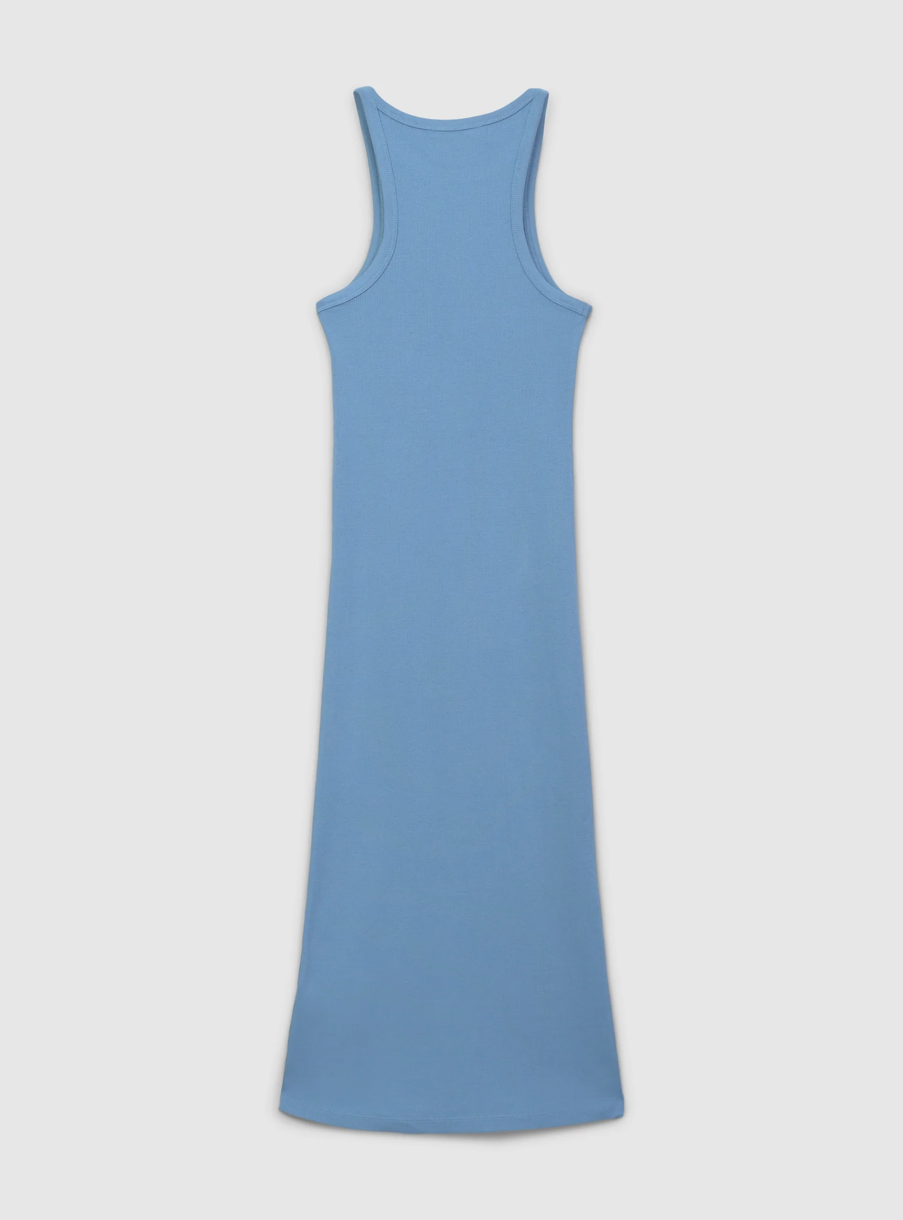 - Long women's dress with a fitted and refined silhouette, characterised by a solid colour that enhances the simplicity of the design.
