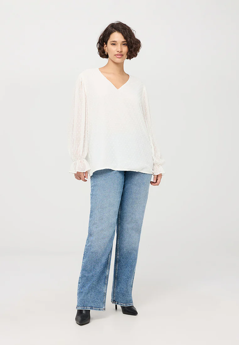 - Women's blouse made of chiffon with a delicate raised polka dot design.