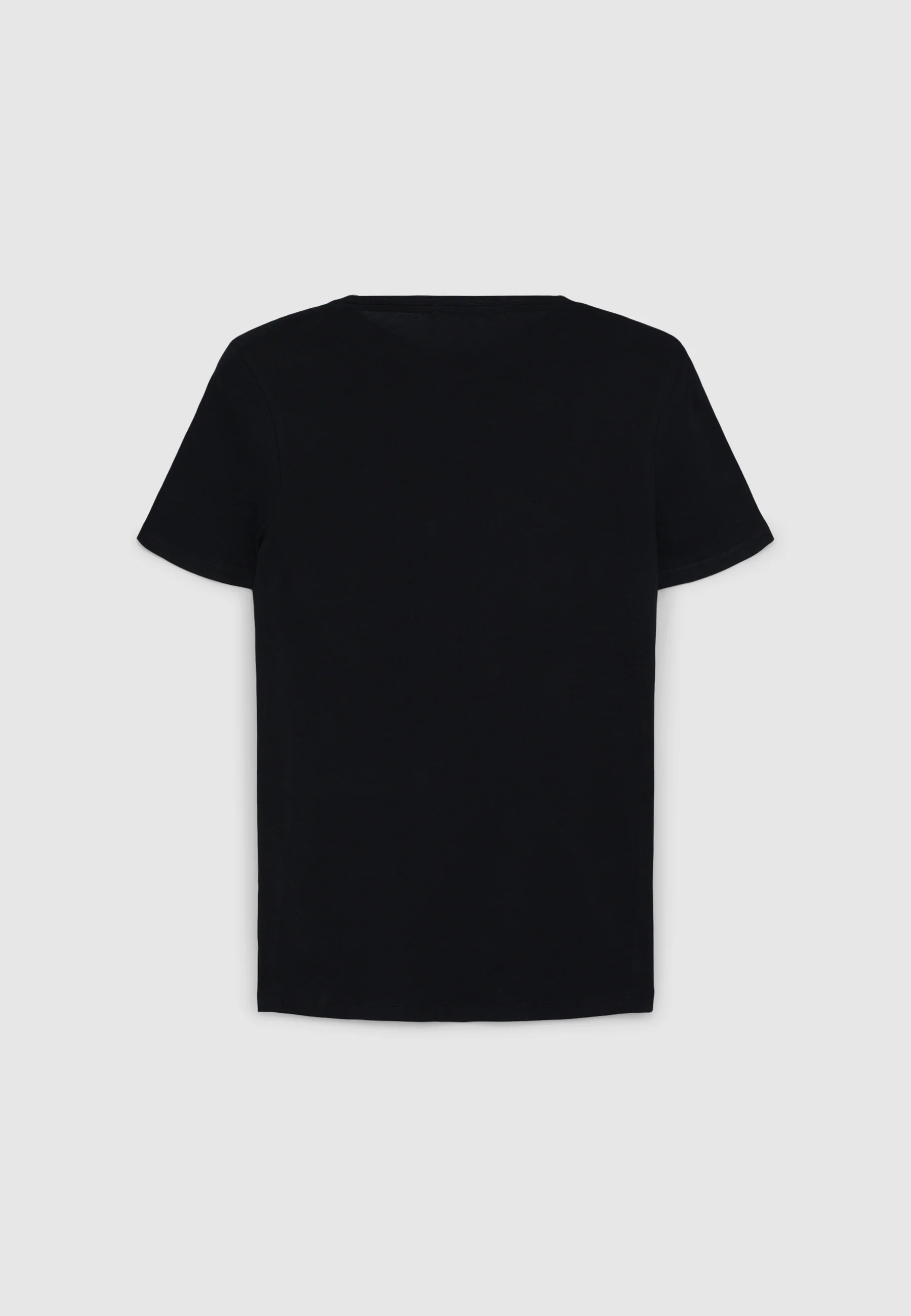 - The model has a round neck and short sleeves, perfect for a casual look but with a touch of elegance thanks to the shiny detail of the print.