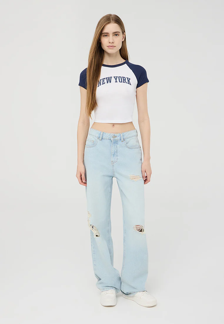 - Women's crop top with a sporty style, featuring short raglan sleeves that give it a dynamic and modern look.