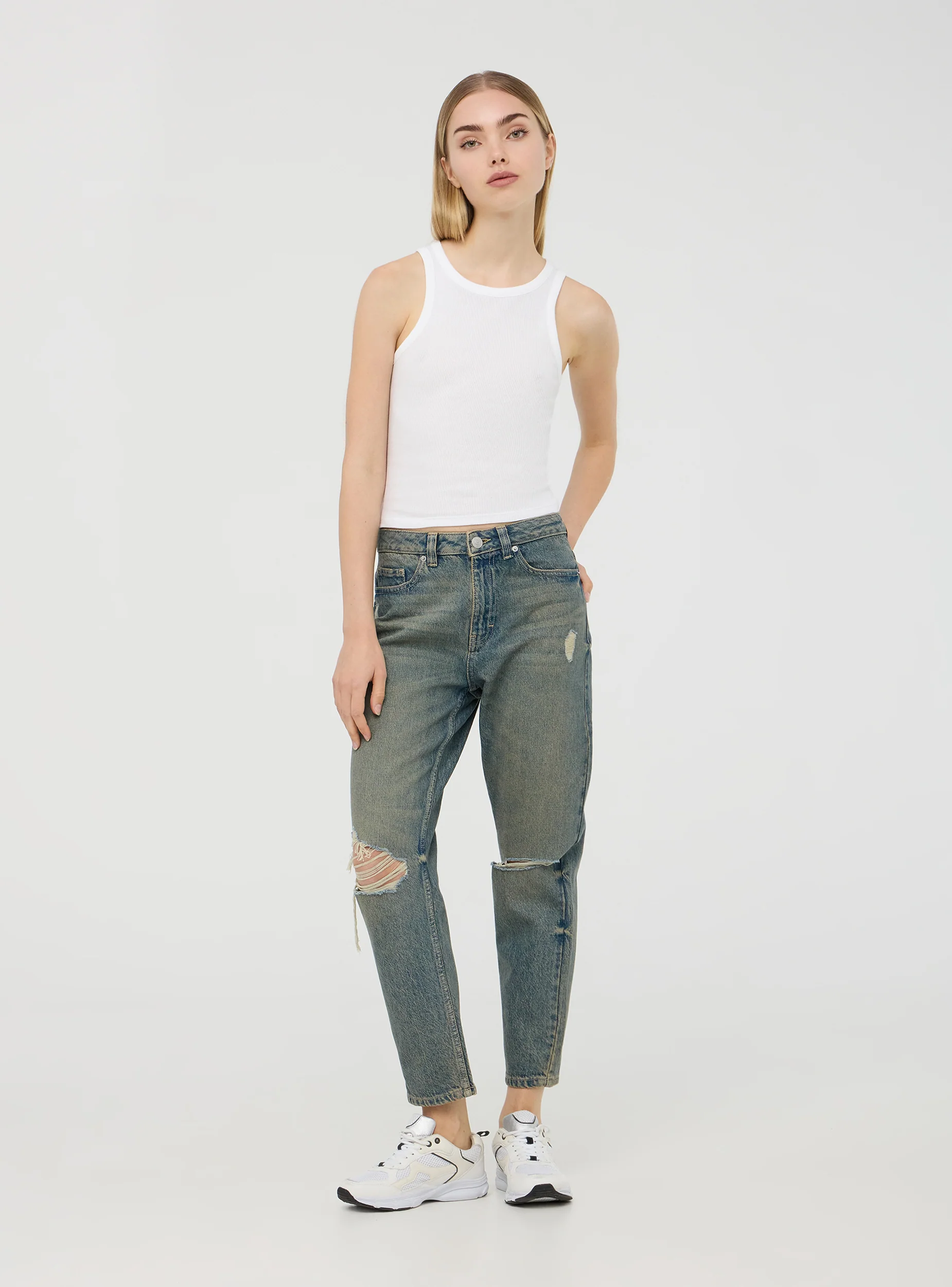 - Women's tank top model rower with a simple and linear design, characterised by wide straps and a round neckline.