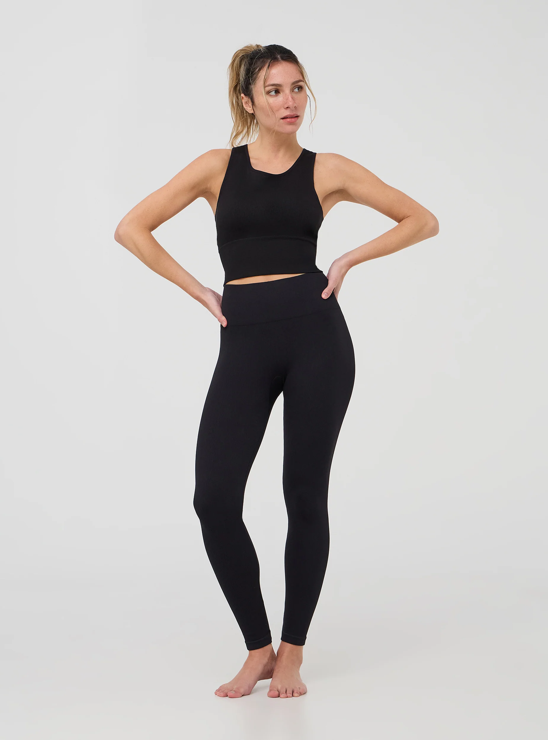 - Long women's sports leggings, featuring a ribbed structure that adds a modern and dynamic touch.