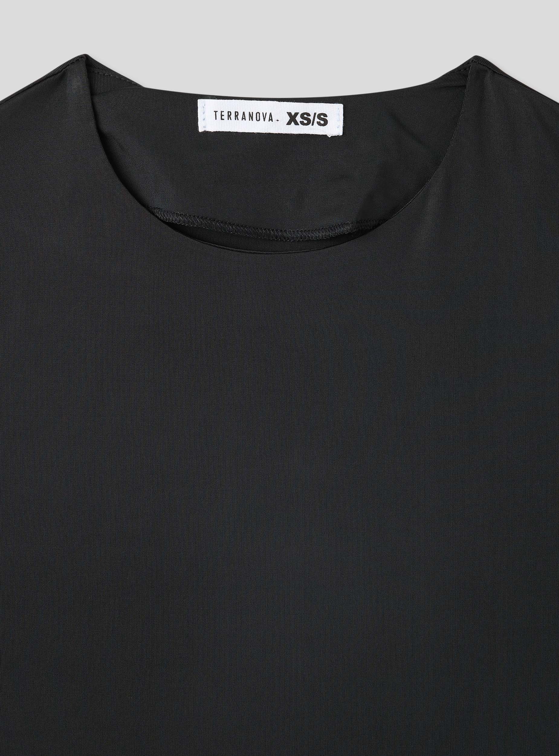 - Midi dress for women, column style, with flared sleeves in solid colour stretch lycra fabric.