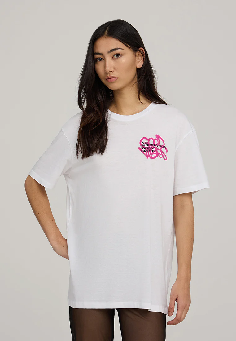 - Women's t-shirt in cotton jersey with front graffiti print and repeated on the back.